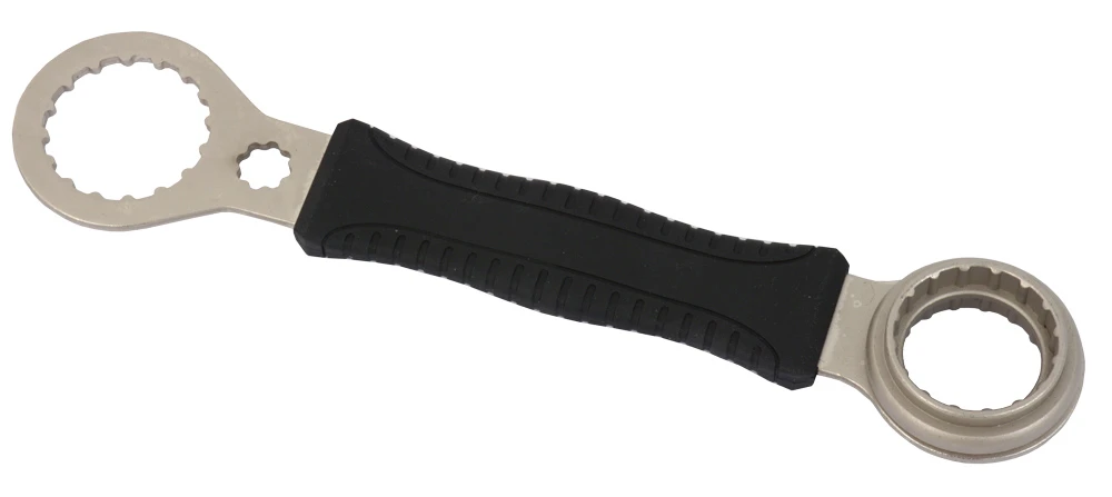Cette clé pour roulements intérieurs Radon est conçue pour le montage et le démontage des roulements intérieurs Shimano, mais elle convient également au montage et au démontage des circlips des freins à disque Center-Lock avec axes E-Thru de 20 mm et 15 mm.